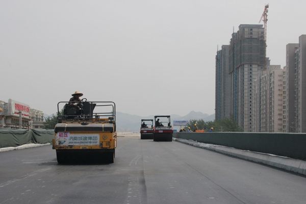 為保證此次試驗段攤鋪順利進行,公司領導和各部門多次到場指導,同時攤鋪項目部和二環南四標項目部密切配合,精心策劃和研究橋面瀝青砂防水層施工方案。此次試驗段攤鋪將合理確定施工機械數量及組合方式,確定攤鋪溫度、攤鋪速度、平衡梁找平方式、松鋪系數、接縫方法等操作工藝和技術數據,為進一步完善設計及施工方案,確保后續橋面瀝青攤鋪施工質量、建設精品工程打下堅實基礎。