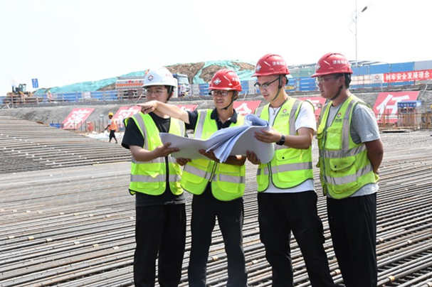 隨時進行施工進度策劃。原計劃夜間澆筑5000立方混凝土,但關注到周末兩天持續高溫,考慮防暑降溫和安全生產要求,他成果斷與相關方溝通交流,協調施工計劃,避開高溫施工,確保施工安全。