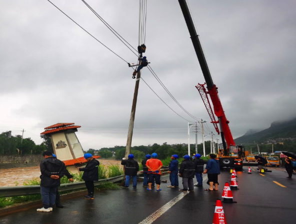 7月12日下午,一條緊急通知出現在S103旅游公路建設專班信息群中:“應濟南市公路局和南山區(qū)應急防控組要求,進行緊急搶險任務”。項目分管副經理立即組織項目部應急搶險人員及搶險設備,第一時間趕往S103旅游公路玉帶河附近進行搶險救援。 受強降雨影響,玉帶河流量增大、水位增高,湍急的水流沖歪了玉帶河護欄、河內電線桿,有的電線桿橫歪在河面上,隨時有被洪水沖到下游的危險。南山區(qū)大面積停電,移動、聯通信號基站均無信號。S103旅游公路項目部6名搶險人員現場配合電力搶險人員對現場危險地帶作應急處理,經過4個多小時的救援,成功將電線桿吊出,保障了附近居民用電和道路安全。