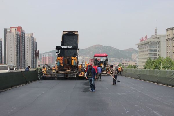 6月23日,二環南四標進行立交橋下快車道瀝青攤鋪。快車道底面層用粗粒式Ac-25面積為12000平方,中面層用中粒式Ac-16面積為14300平方。攤鋪前攤鋪項目部提前計劃,合理安排,共組織4臺攤鋪機,2臺壓路機;攤鋪過程中現場施工人員緊密配合,加強對每一環節檢測控制與管理,保證了攤鋪質量。預計到26日完成此次攤鋪任務。