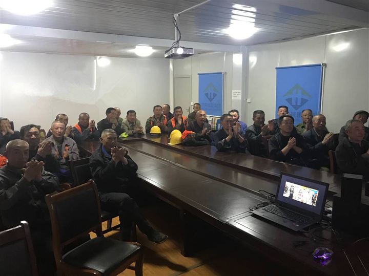 落日余暉剛剛消散,忙碌了一天的工人們也剛剛吃過晚飯,便相邀結隊地走進了項目部會議室,原來是匯通公司工會分會、團支部為豐富大家工作之余的文化生活,倡導健康、文明的生活理念,聯合舉辦的“關愛農民工,電影進工地”活動于2019年3月26日來到了西沙東路項目部。本次活動為農民工們放映的影片是《中國藍盔》,作為中國首部維和軍事題材電影,影片講述了當下中國維和部隊官兵在非洲堅決執行習主席指示的“構建人類命運共同體”的大國方針,該影片通過講述維和部隊官兵在海外執行維和任務中發生的感人故事,從視野上更體現出了中國軍人的大格局和大擔當,他們以自己的實際行動彰顯了中國“愛和平、負責任”的大國風范。“這電影不孬!”
