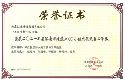 濟南市建筑業QC小組成果競賽二等獎