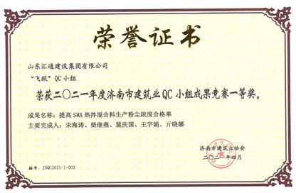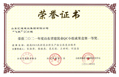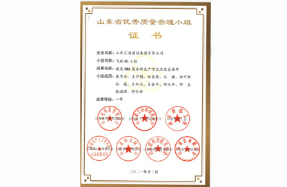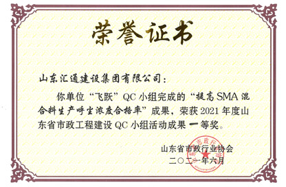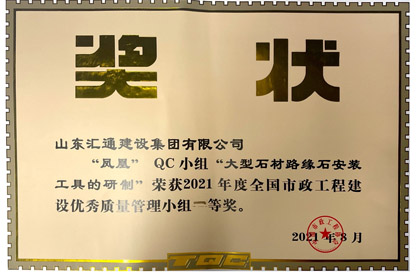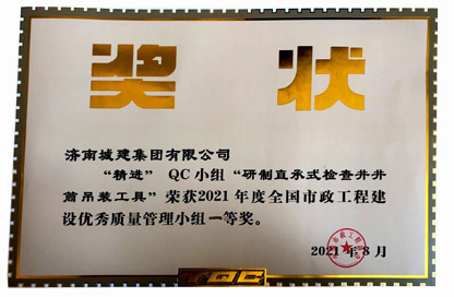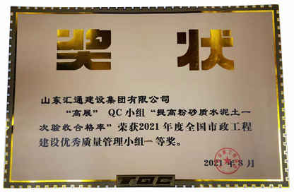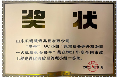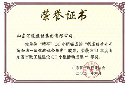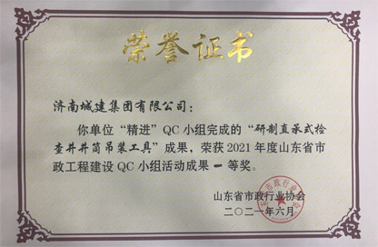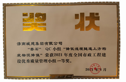山東省市政工程建設QC小組活動成果一等獎